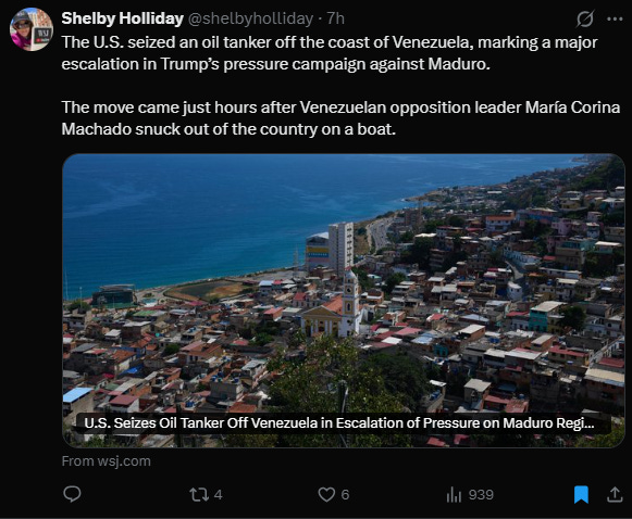 U.S. seizes oil tanker off the coast of Venezuela